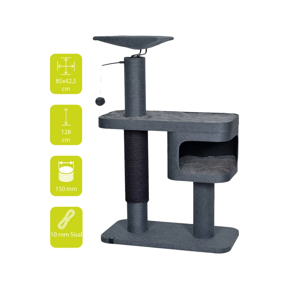Ziet dit krabmeubel van Ebi er niet heerlijk zacht en comfortabel uit? Er zijn ontzettend veel fijne plekjes in dit krabmeubel waar uw kat zich kan terugtrekken of juist uren kan vermaken. De hangmat bovenin zorgt voor de ideale uitkijkpost en ook de grot is een heerlijk plekje voor een fijn middagdutje. Het losse kussen in deze grot is van namaak konijnenvacht. De krabpaal is bekleed met stevig sisal van 10 mm dikte, waardoor deze extra lang mee zal gaan. Na al dat krabplezier is het tijd om te spelen met het hangende pluche speeltje bovenin. Het balletje blijft maar terugkomen, dus uw kat hoeft zich voorlopig niet meer te vervelen! Kortom, genoeg avonturen te beleven in dit prachtige krabmeubel van Ebi.