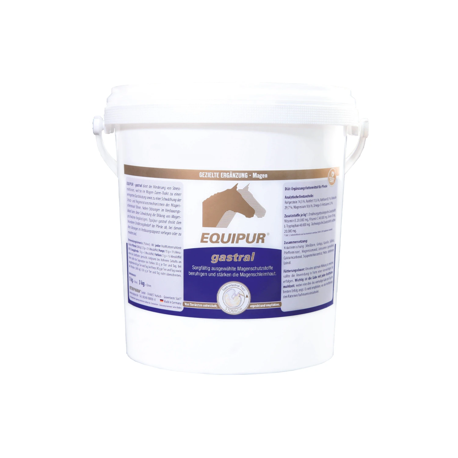 Equipur Gastral is een aanvullend diervoeder dat gegeven kan worden ter ondersteuning van het maagslijmvlies. Om het maagvlies gezond te houden kan het vermijden van spanningen een rol spelen, maar ook de voeding, medicatie en intensieve lichaamsbeweging kunnen invloed hebben hierop. De combinatie van tryptofaan, pectines, magnesiumoxide, anti-oxidanten, kruiden en onverzadigde vetzuren dragen bij aan een gunstig milieu in de maag.