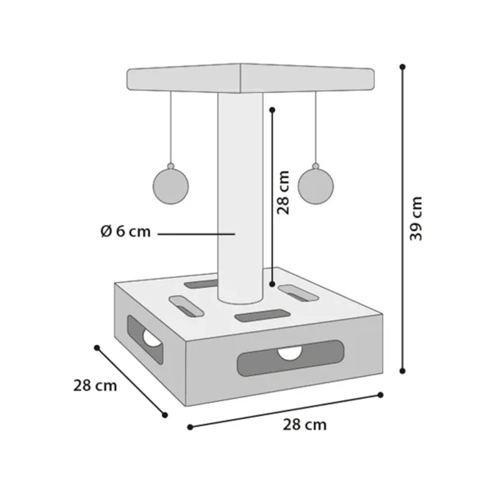 - Dikte bodemplaat: 8 cm en diameter krabpaal: 6 cm