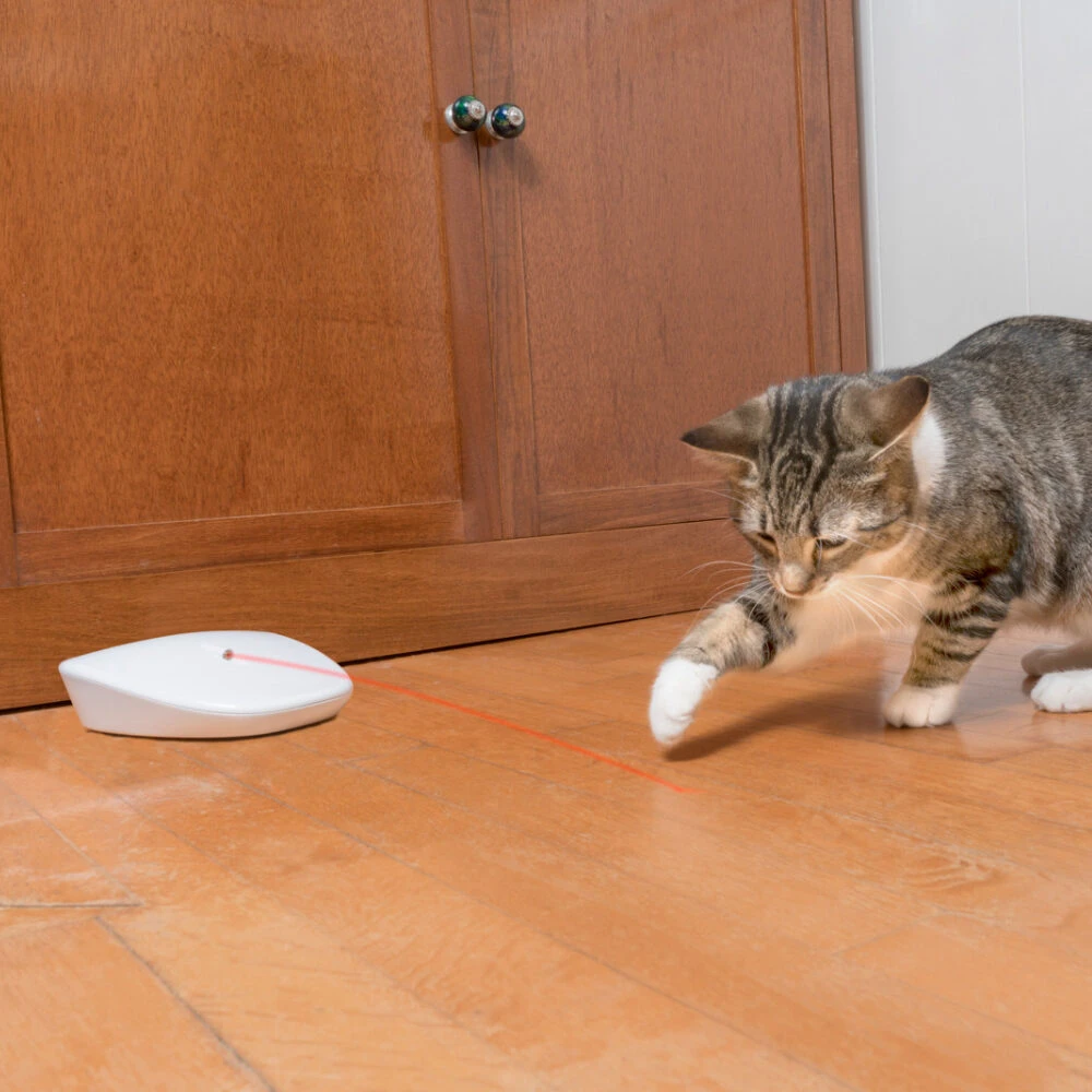 Wilt u uw kat ook actief bezighouden maar heeft u niet altijd tijd om zelf met een hengeltje te zwaaien? Met de Frolicat Laser Tail Light kunt u uw kat gedurende de dag bezighouden en vermaken. Dit speeltje beweegt over de grond terwijl het draait en spint in alle directies. Als het speeltje vast raakt onder de bank of in een hoek zal het zichzelf bevrijden. Uw kat zal meteen aangetrokken worden tot de lasers omdat dit het jachtinstinct flink stimuleert. De Laser Tail gaat vanzelf uit na 10 minuten zodat je kat ook nog even zijn rust kan pakken!
