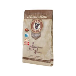 De hondenvoeding van Markus-Mühle True Nature is rijk aan voedingsvezels en bevat het Aquamin-vitamine-complex. Dit complex bestaat onder andere uit zeealgen, mosselen, vis uit de ijszee en kreeftachtigen. Deze zeevruchten bevatten 100% natuurlijke vitaminen, mineralen en sporenelementen die bijdragen aan de gezondheid van uw hond. Het vlees in Markus-Mühle True Nature is afkomstig van Zwitserse vrije uitloopkippen. Dit kippenvlees heeft een laag vetgehalte.
