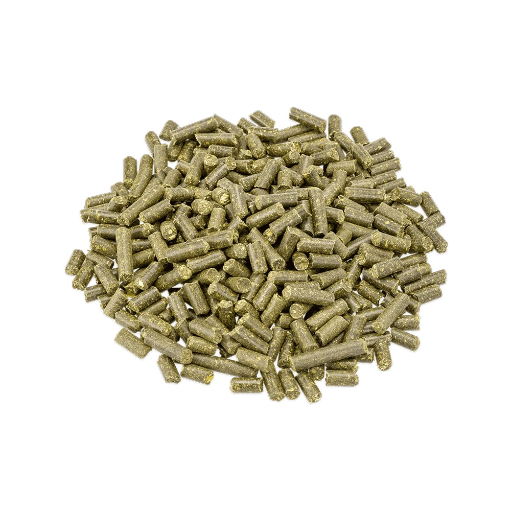 De korrels worden gemaakt van grove luzerne bladen die gehakseld zijn. Via een zeef worden de eiwitrijke bladen gescheiden van de rest. Enkel met deze bladeren wordt de korrel geperst.