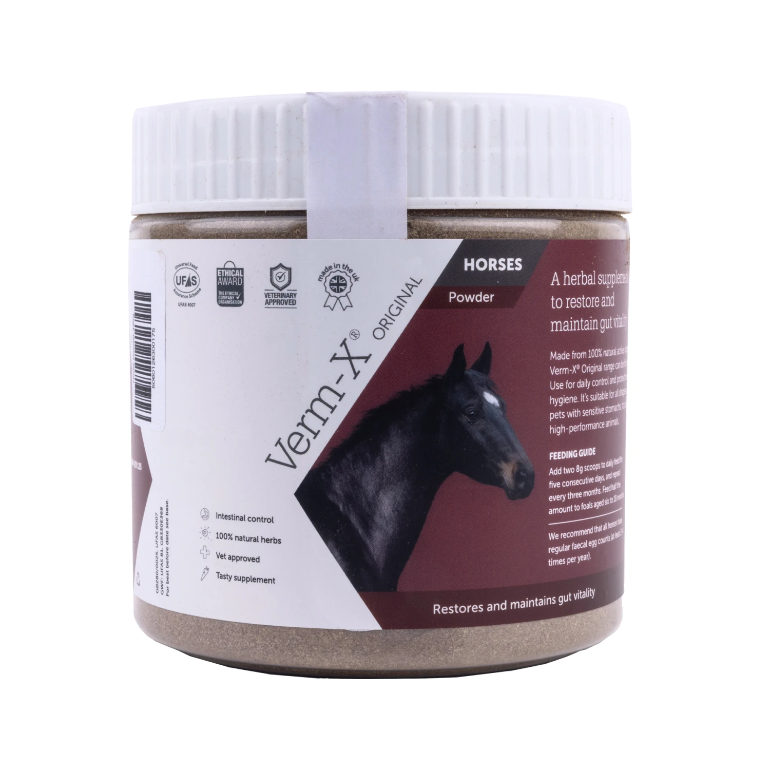 Verm-X is een kruidenpreparaat in de vorm van brokjes, poeder of vloeistof voor paarden, pony’s en ezels. De kruiden in Verm-X ondersteunen een gezonde werking van de darmen. Dit aanvullende diervoeder is makkelijk toe te dienen.